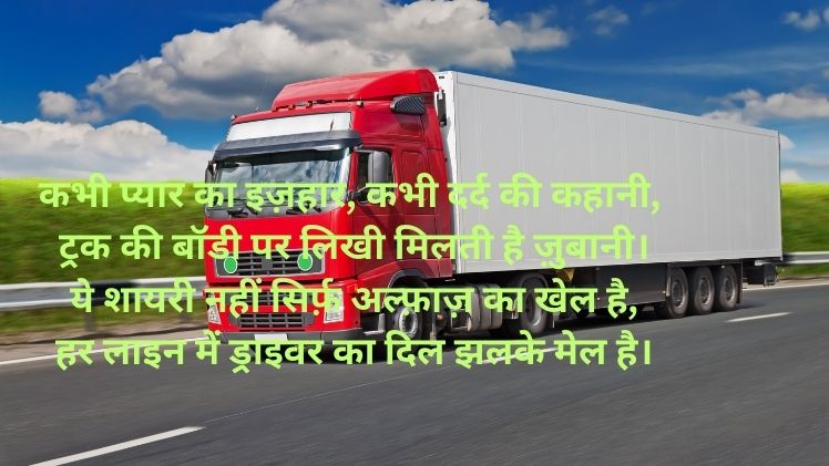 जैसे की आपने देखा होगा बहुत सारे ड्राईवर अपनी गाड़ी, ट्रक, बस को कितना सझा धजा के रखते हैं क्योंकि एक ड्राईवर की रोजी रोटी होती है उसकी गाड़ी इसीलिए हर ड्राईवर अपनी गाड़ी को साझा धजा के रखता है कोई गाने का सौकीन होता है कोई फिल्मो का लेकिन आपने गाड़ी के पीछे कभी एक शायरी पड़ी होगी क्या कमाल की शायरी होती है वो आपका भी मन करता होगा ऐसी शायरी हम अपनी गाड़ी पे लिखायें लेकिन मिलेगी कहा इसी लिए हम इस पोस्ट में आपके लिए Truck Driver Shayari लाये हैं जो आपको बहुत पसंद आने वाली हैं ।